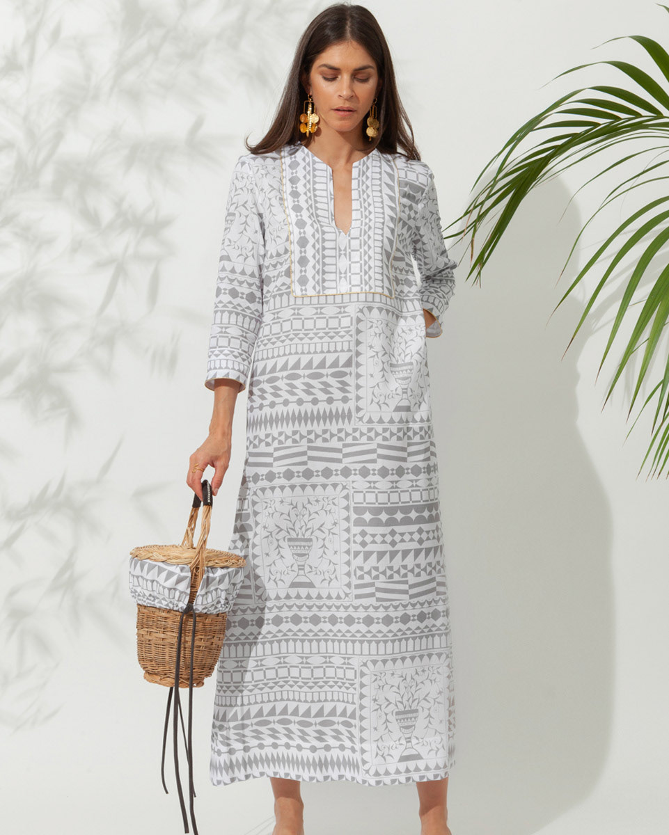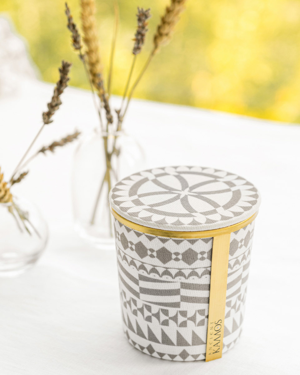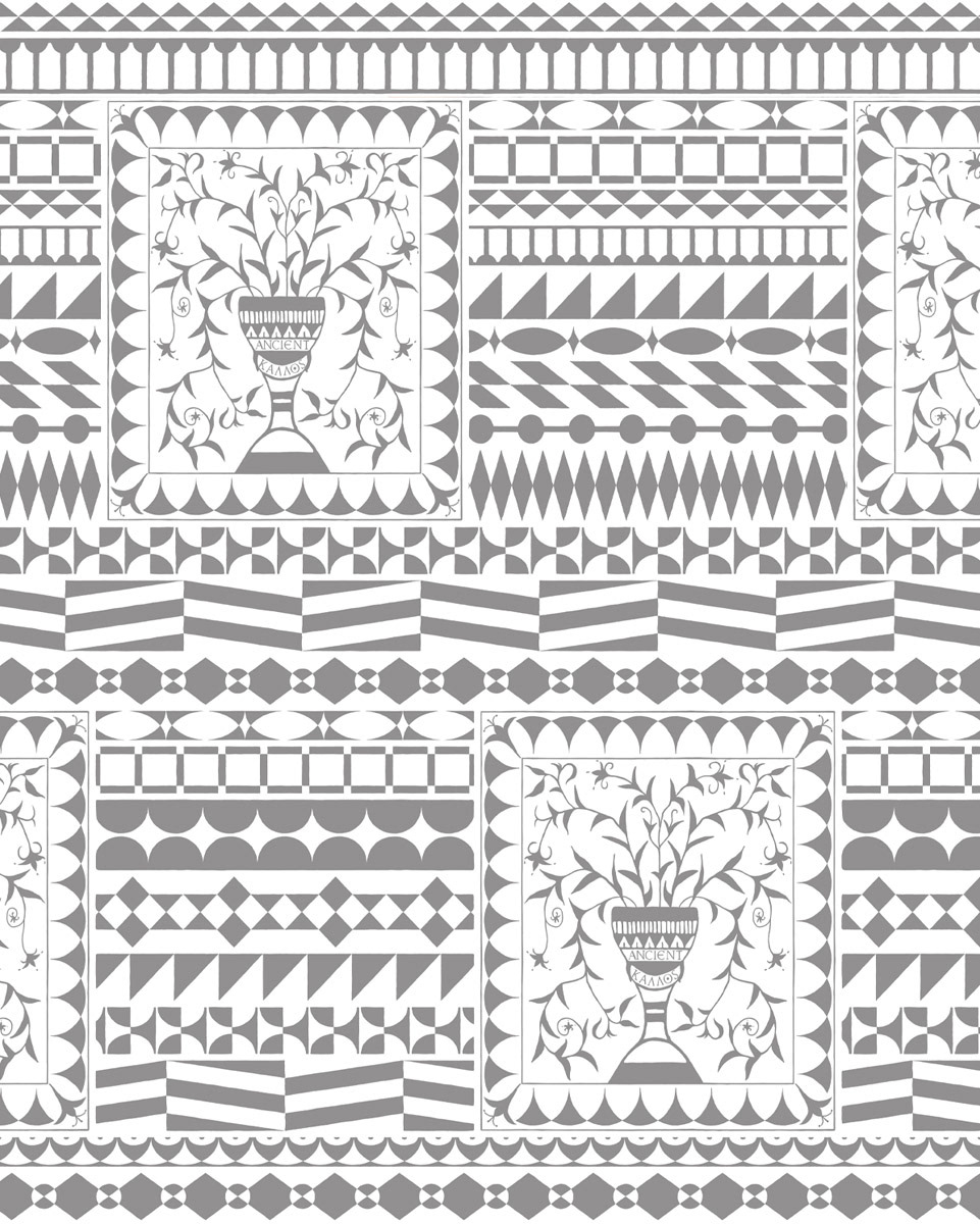 The village of Pyrgi in Chios serves as the source of inspiration for the 'Pyrgi' print, through its distinctive xysta patterns, which lend the settlement a striking visual richness, as handcrafted motifs cover nearly every surface of its buildings.