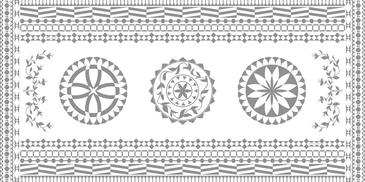 Η εικονογράφηση περιλαμβάνει γεωμετρικά σχέδια που αντανακλούν την τοπική παράδοση, συνθέτοντας μια καλειδοσκοπική, σχεδόν μυστηριακή αίσθηση.